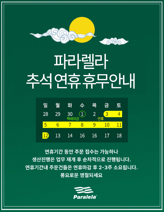 파라렐라 추석 연휴 택배 및 휴무 안내